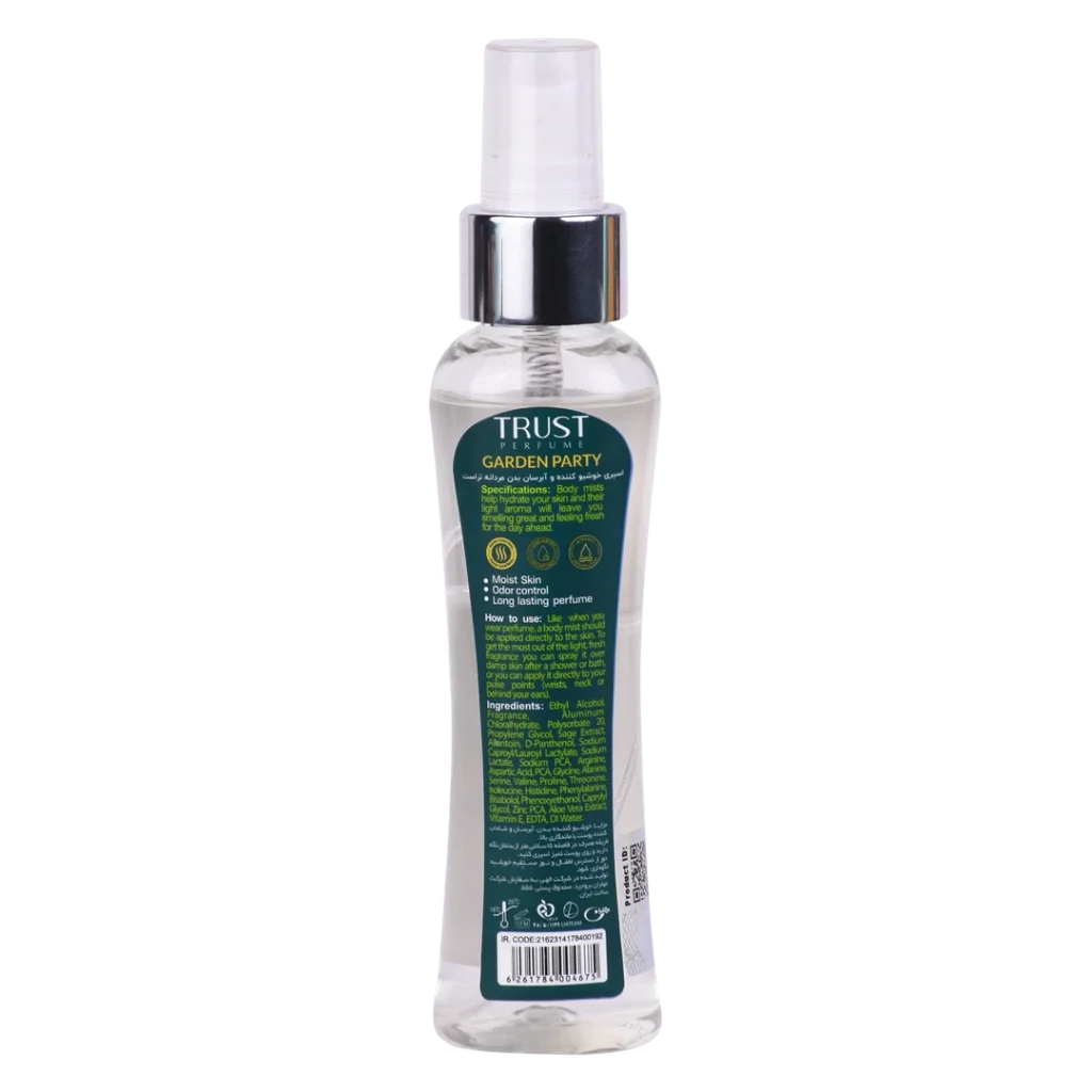 بادی میست مردانه تراست مدل Garden Party با ترکیبات منتخب خود، یک عطر خاص و ایدهآل برای مردانی است که میخواهند با بویی سبز و تند تازه حضور خود را مشخص کنند. تجربه این بادی میست که حس آروماتیک را به شما هدیه میدهد، میتواند شما را در هر موقعیتی خوشایند و دلچسب جلوه دهد.