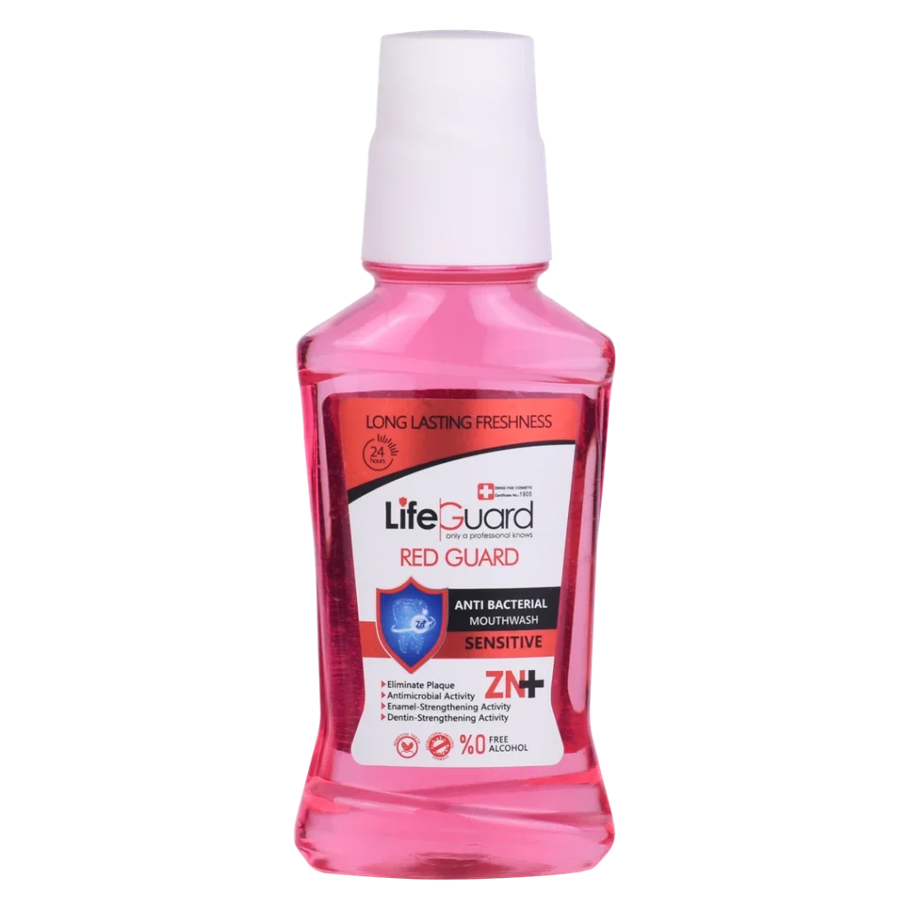 دهانشویه بزرگسال حساس (Red Guard) برند لایف گارد، به واسطه بهرهمندی از مواد مؤثرهای همچون زینک و CPC (ستیل پریدینیوم کلراید)، ویژگیهای ارزشمند دیگری را به شرح زیر برای سلامت دهان و دندان شما به ارمغان میآورد: