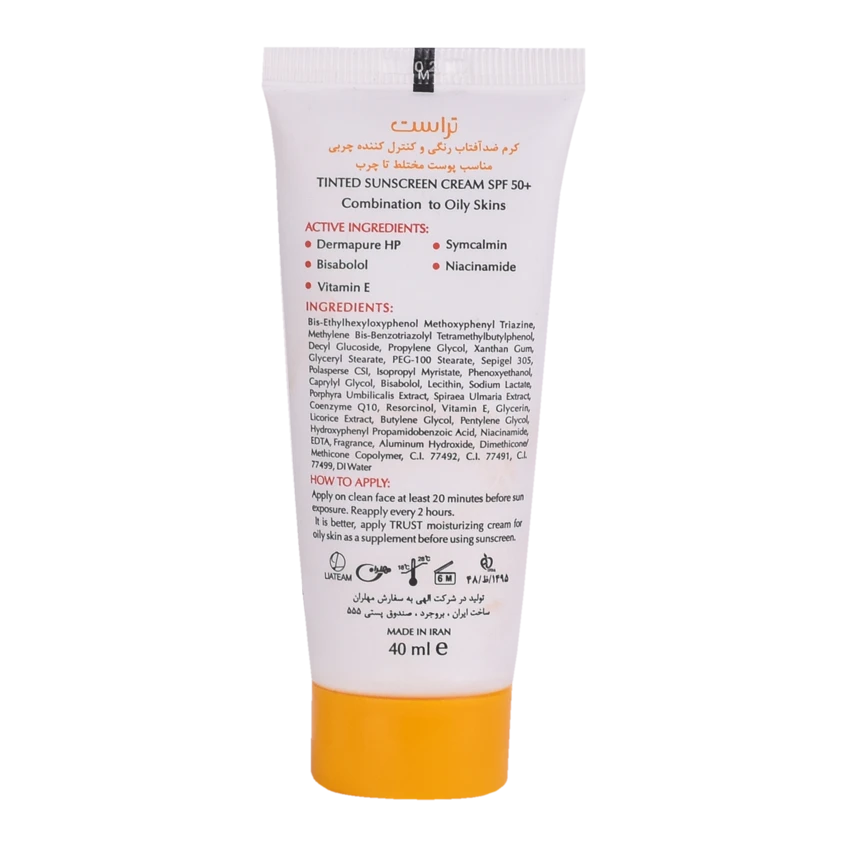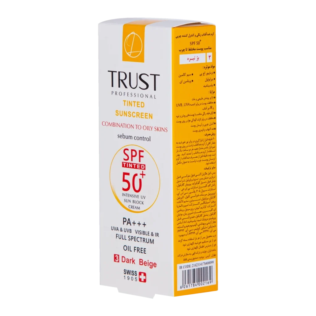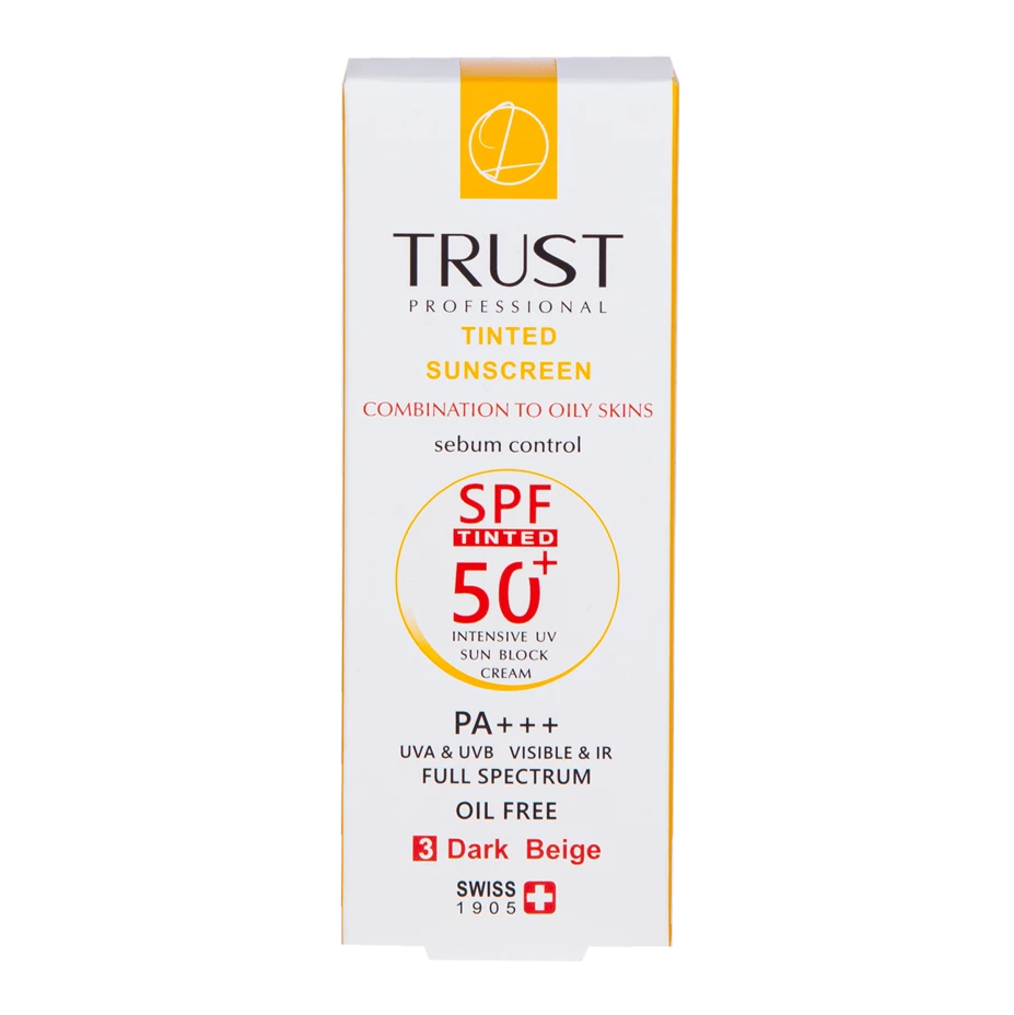 کرمهای ضدآفتاب رنگی تراست با SPF50+ از مرغوبترین و جدیدترین مواد اولیه موثره دارای حداکثر حفاظت دربرابر پرتوهای مضر خورشید ساخته شدهاند؛ این کرم با وجود بهرهمندی از بافتی سبک، دربرابر آسیبهای وارده توسط نور خورشید به خوبی از پوست محافظت و با مهار رادیکالهای آزاد از تخریب سلولهای پوستی جلوگیری میکند. همچنین با مصرف این محصول، بدون بسته شدن منافذ پوستی و ایجاد خلل در تنفس سلولهای پوستی، ضمن کنترل چربی، پوستتان آبرسانی میشود.